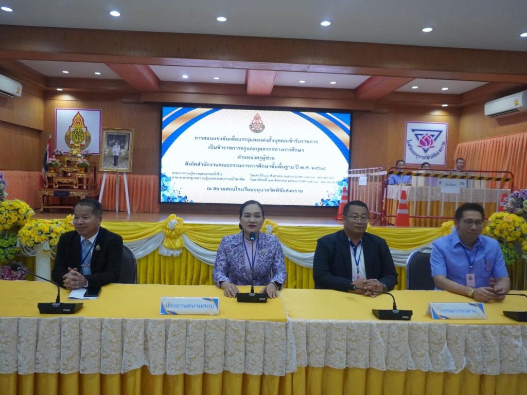 นางสุภิญญา วงษ์นาม ผู้อำนวยการสำนักงานเขตพื้นที่การศึกษาประถมศึกษาสมุทรปราการ เขต 1 ในฐานะประธานดำเนินการสอบ ได้ตรวจเยี่ยมห้องสอบ พร้อมด้วย ดร.ภูมิ พระรักษา นายศาสตรา ปาสาบุตร และนายสุธวัช อุทัยอมฤตวารี รองผู้อำนวยการสำนักงานฯ เพื่อให้กำลังใจผู้เข้าสอบและกำกับดูแลความเรียบร้อย
